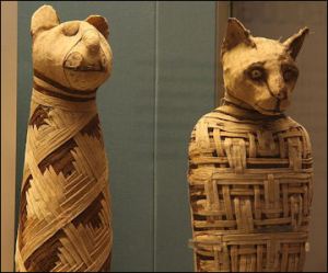 Image is of cat mummies, reportedly from the British Museum’s collection of animal mummies. For more about Egyptian animal mummies click.
