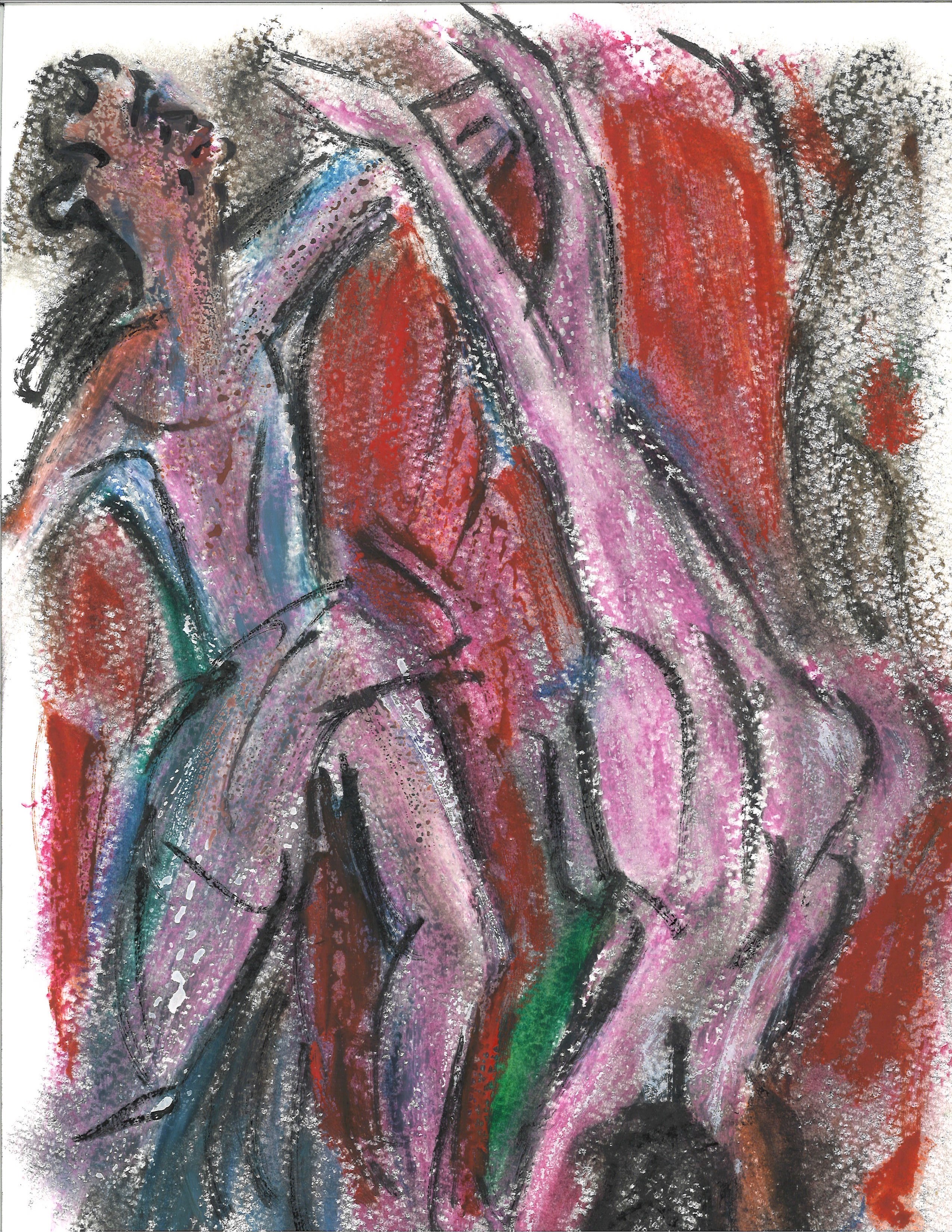March 31, 2020March 31, 2020 William Eaton Après Christian Rohlfs, Acrobats, by William Eaton (oil pastel and brush pen), March 2020