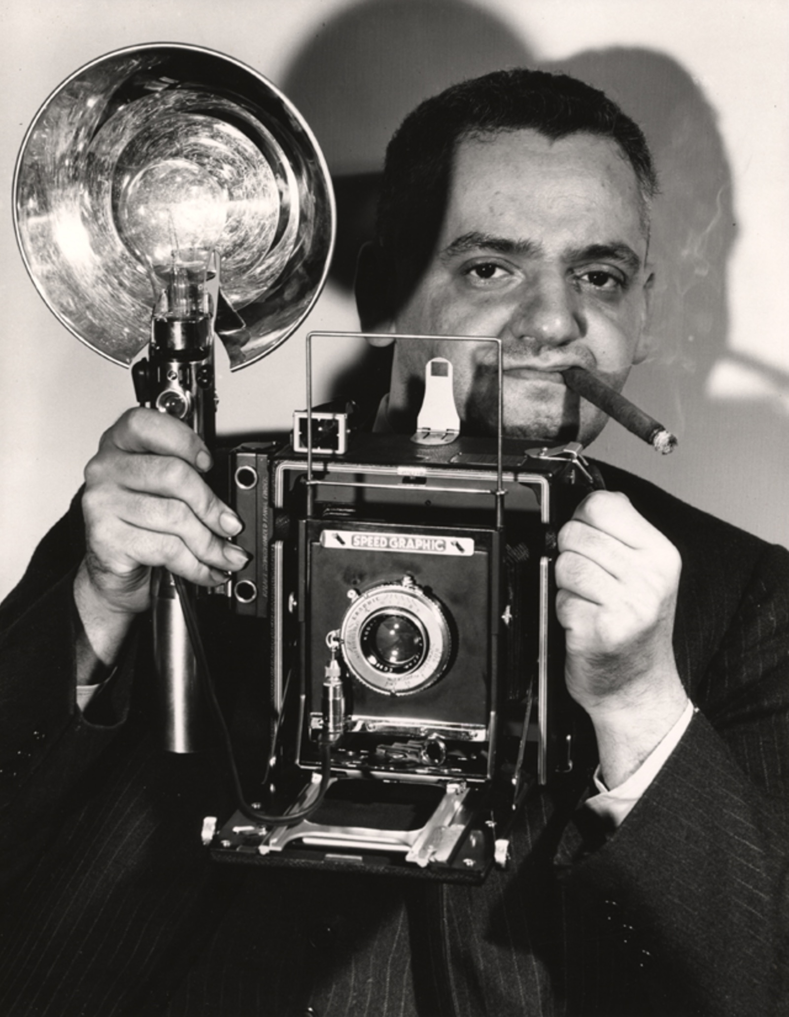 The photograph is by Weegee (Ascher Fellig, 1899–1968, shown above right), and is from the excellent collection of his photographs at the International Center of Photography in New York.